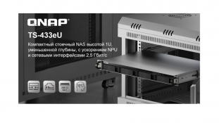 Компания QNAP представила компактный стоечный NAS TS-433eU высотой 1U с четырьмя дисковыми отсеками, который является доступным решением хранения данных и резервного копирования для широкого круга пользователей и предприятий. Благодаря уменьшенной глубине всего 292,3 мм (11,51 дюйма) TS-433eU легко помещается в монтажных шкафах и стойках с ограниченным пространством.