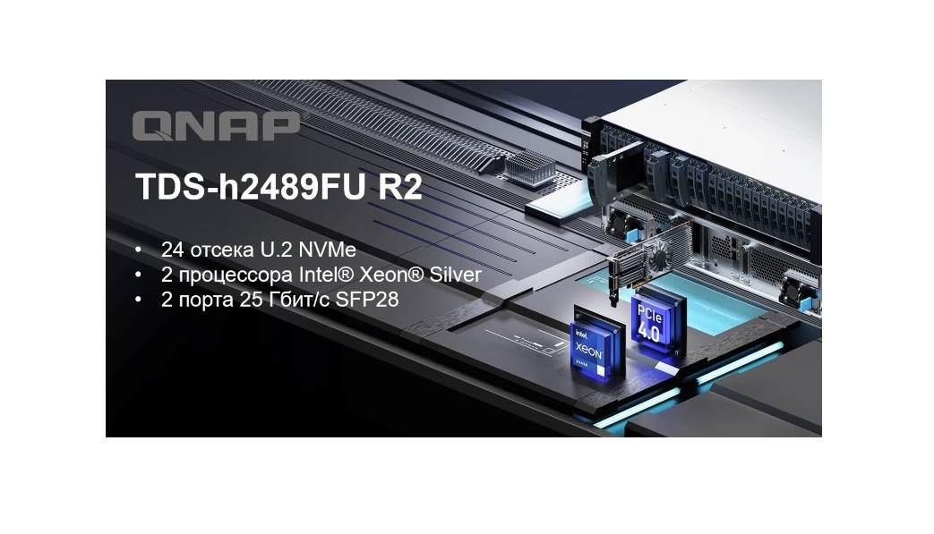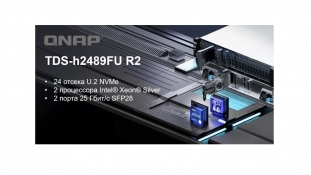 Компания QNAP выпустила флагманский стоечный NAS-накопитель All-Flash нового поколения с 24 дисковыми отсеками U.2 NVMe и возможностью установки сетевого интерфейса 100 Гбит/c. TDS-h2489FU R2 обеспечивает высокую и стабильную производительность, масштабируемость хранилища и интерфейсов, чтобы удовлетворять требования предприятий к высоким рабочим нагрузкам, многозадачности и низкой задержке в таких применениях, как виртуализация, высокопроизводительные вычисления (HPC), центры обработки данных, искусственный интеллект и машинное обучение, хранение больших данных и 3D-рендеринг.